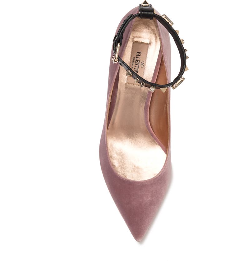 Edgy studs embellish the dainty ankle strap of this glamorous pointed toe pump that's both modern and classic.