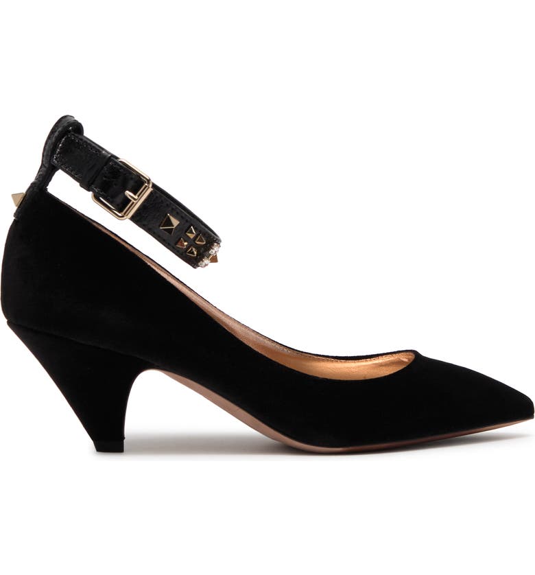 Edgy studs embellish the dainty ankle strap of this glamorous pointed toe pump that's both modern and classic.